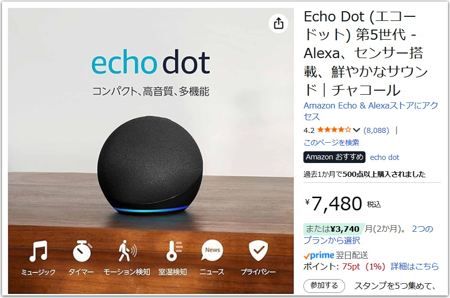 なので当然ごとくいただいて喜んで持ち帰りました。そのスピーカーの素性を調べると Amazon Echo Dot with clock 第5世代バージョンであります。