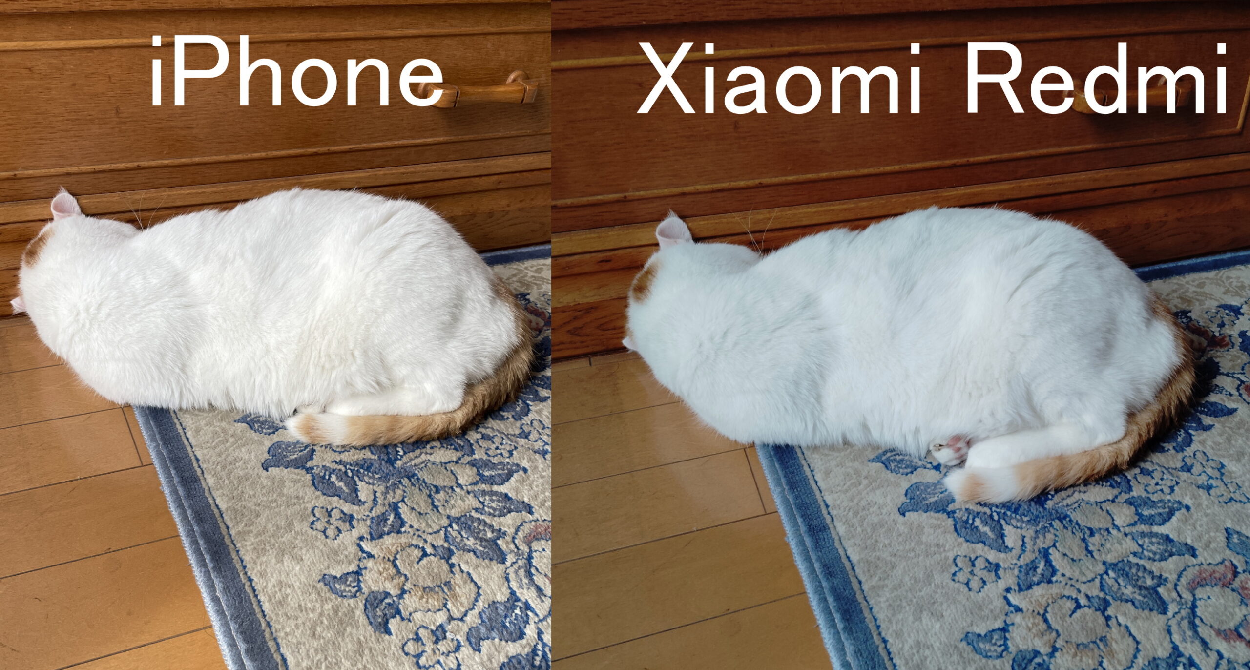 ↓ iPhoneと比べたところ。愛猫の毛並みがボケております。