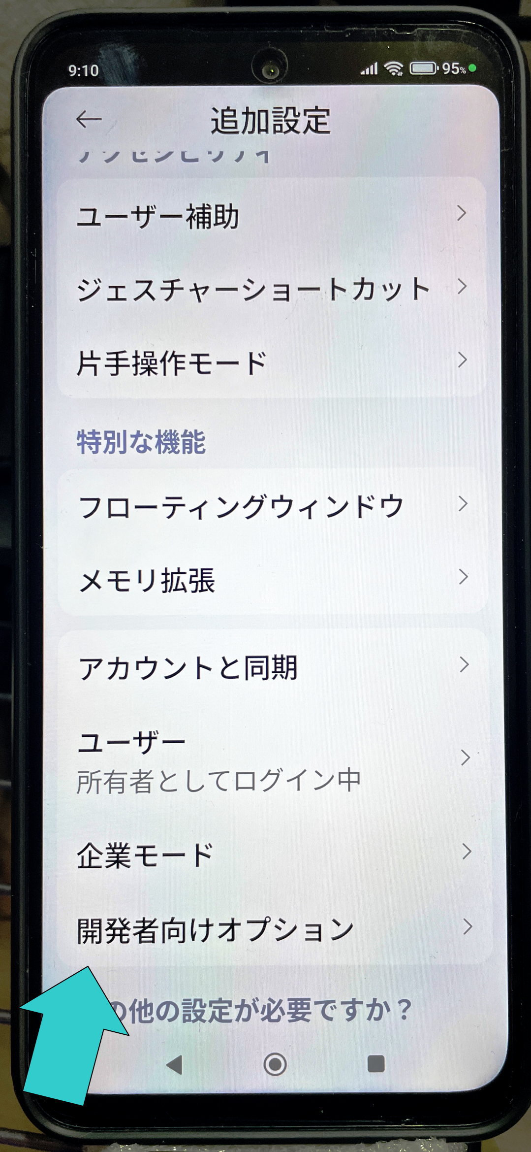 すると「追加設定」で「開発者向けオプション」がでできました。