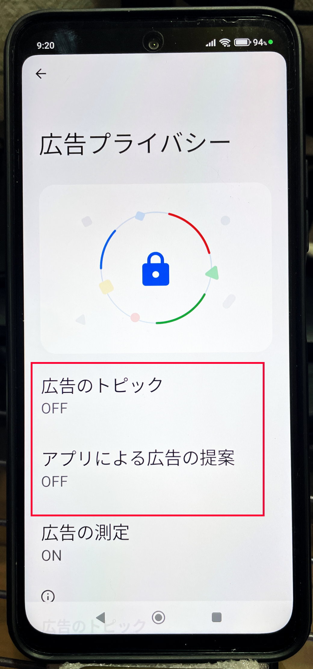 さらに、プライバシーから、アプリによる広告の提案をオフにします。