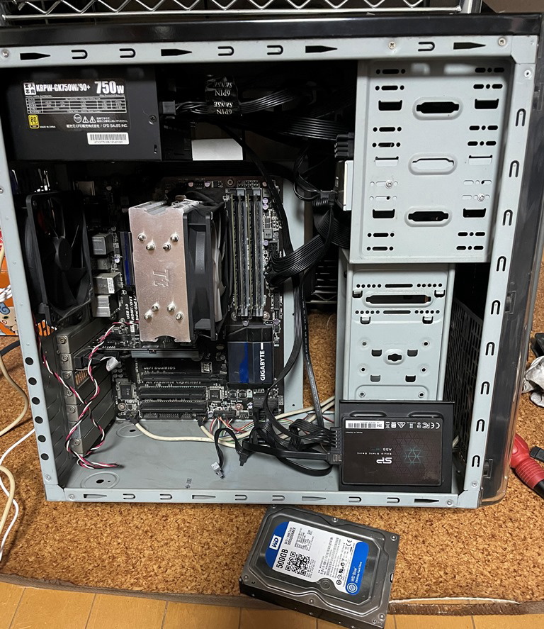 そんで今回は壊れたパソコンは直さずに、外付けハードディスクを用意してすべてのデータを取り出すということになりました。ちなみにメインの業務用機器制御とメールとネットの使用とかはすでに設置してあるWindows 11パソコンで使っております。