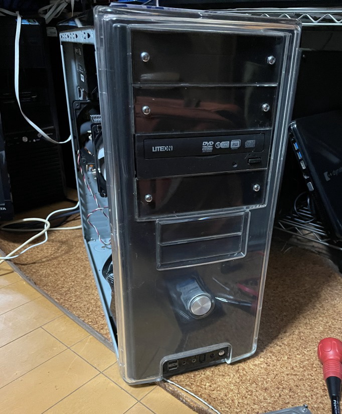 ↓ こんな感じのWin 7デスクトップPCです。バラしてディスクを取り出したところ。