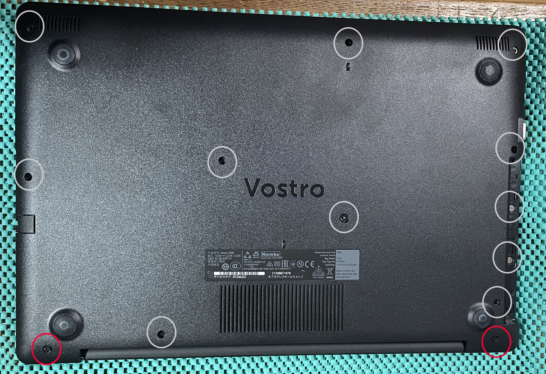 ↓ ねじはこんだけあります。赤丸は緩めても外れないようになってます。