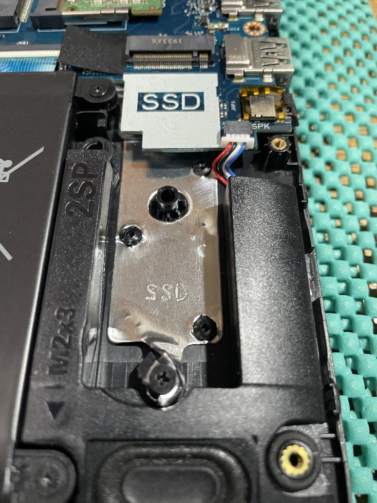 SSDのほうに保護カバーをつけてから、裏ブタを取り付けて組み立てなおします。