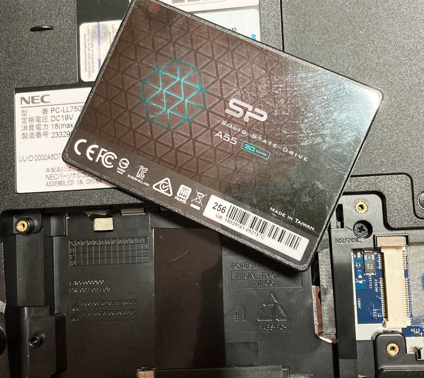 ↓ 余っていたシリコンパワーSSD 256GBを入れる。