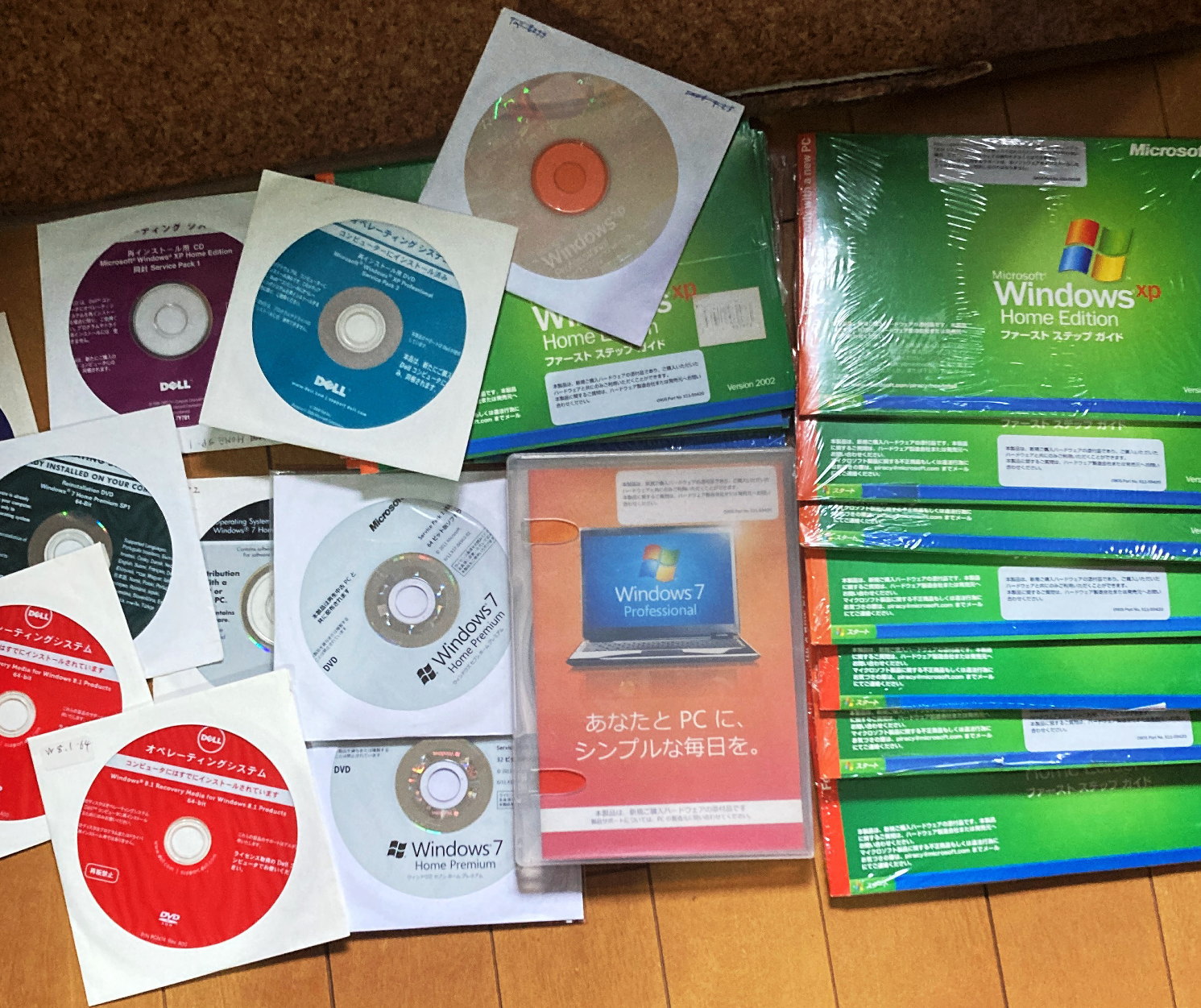 ↓ 調べてみると出てきたマイクロソフトの旧OSたち、これ以外にもWindows95や98の箱入りパッケージもどこかに保存してあると思う。