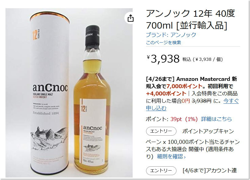 ↓ アンノックというHIGHLAND SINGLE MALTのよさげなウイスキーであります。
