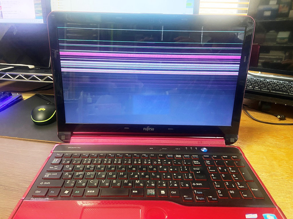 ノートパソコンの画面に筋が出てちらつくという症状の修理依頼でしたが…、買い替えになりました