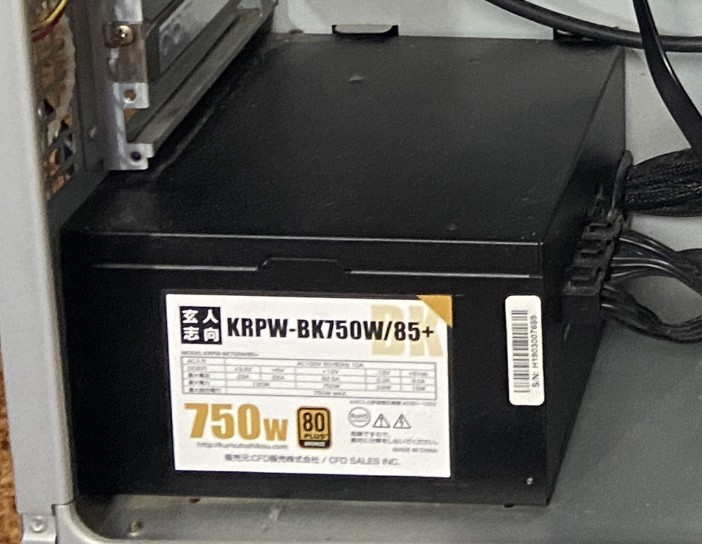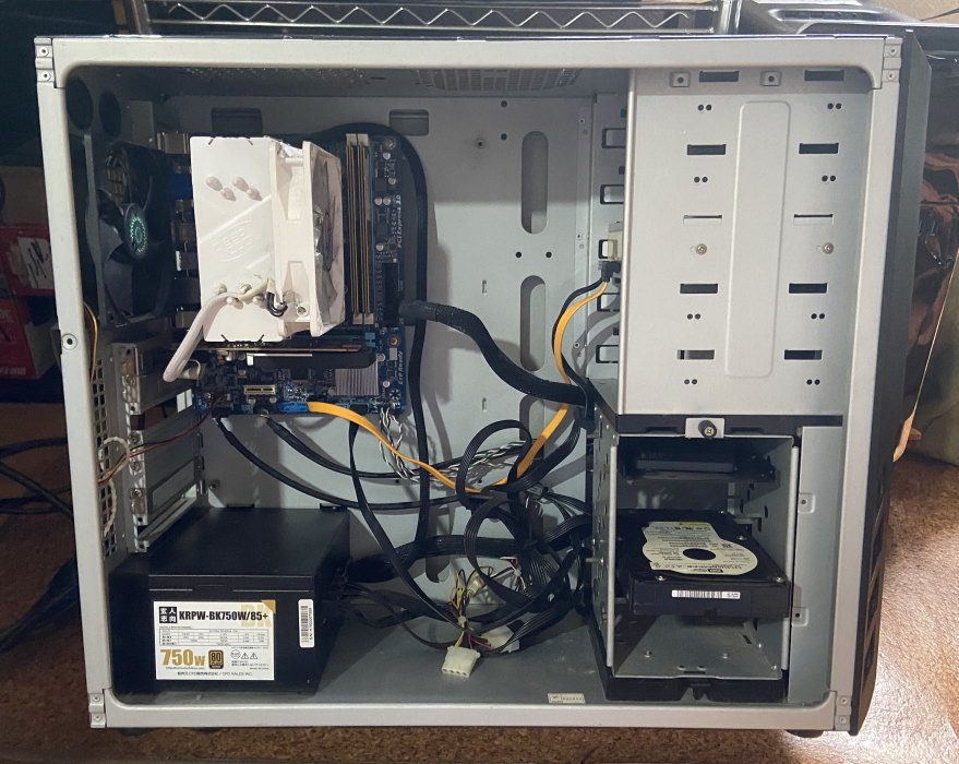持ち帰ってからカバーを開けてざっと確認しますが、特に怪しいところもないのでたぶん電源不具合だろうなと思い、さっさと入っていたSSDとデータ用のハードディスクを取り出して主なデータファイルを取り出します。